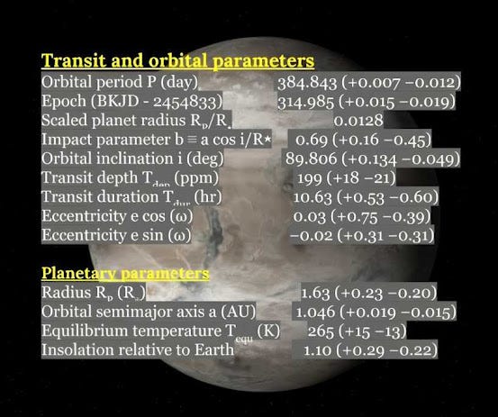 Kepler-452b: Dances around Kepler-452, a Sun-like star, in a 385-day orbit.