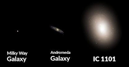 - Size: IC 1101 dwarfs both the Andromeda Galaxy and the Milky Way in terms of size. Its diameter is more than double that of the Milky Way and nearly triple that of Andromeda.